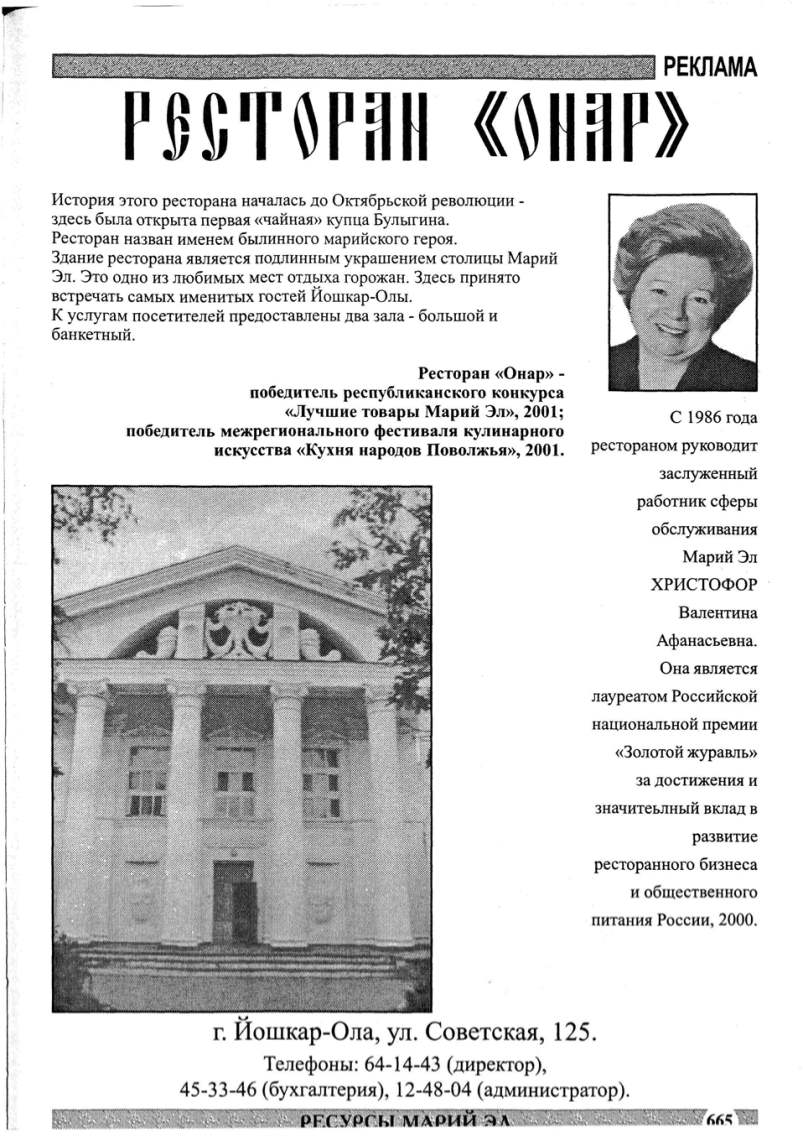 Здание ресторана является подлинным украшением столицы Марий