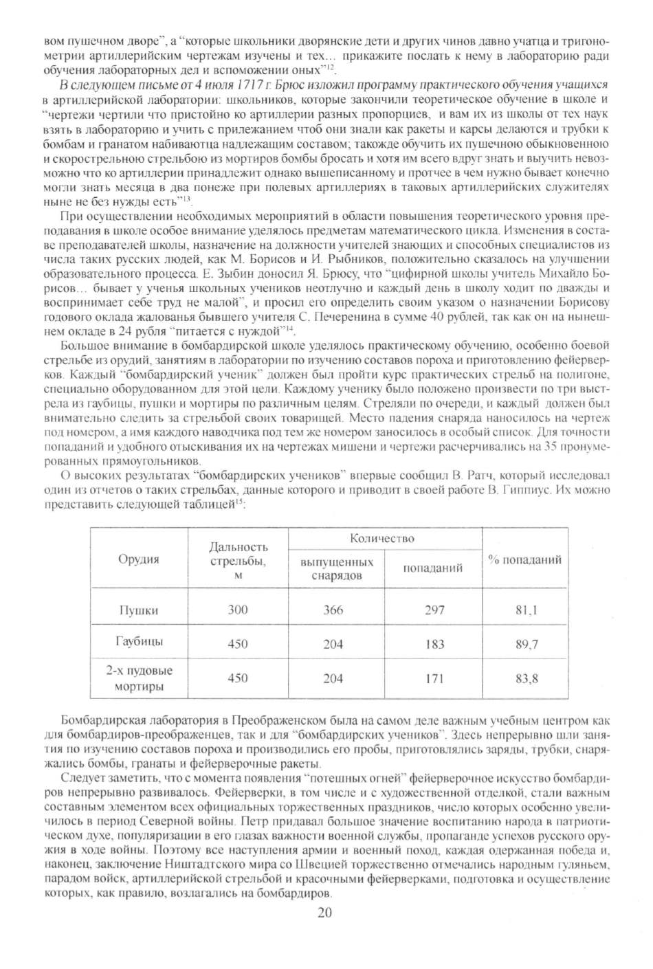 один из отчетов о таких стрельбах, данные которого и приводит в своей работе В. Гиnпиус. Их можно