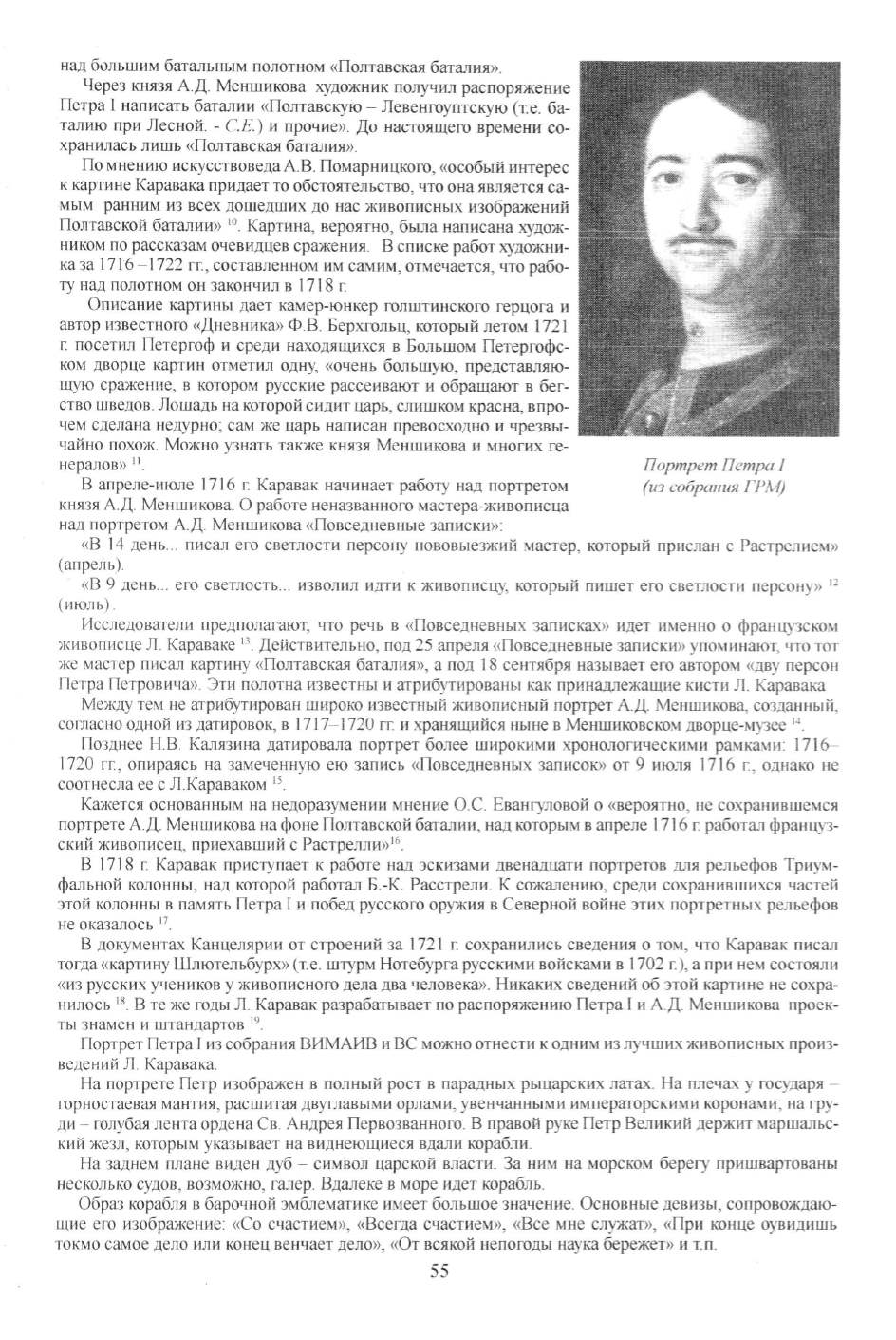 князя АД. Меншикова. О работе иеназванного мастера-живописца