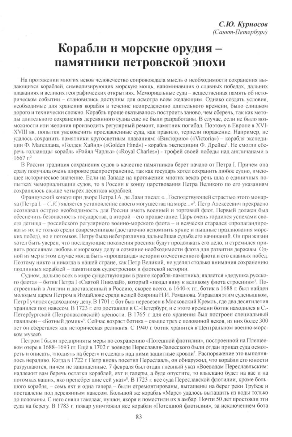 В России традиция сохранения судов в качестве памятников берет начало от Петра