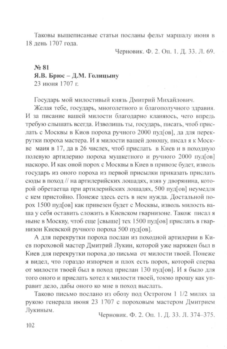 Я.В. Брюс- Д.М. Голицыну