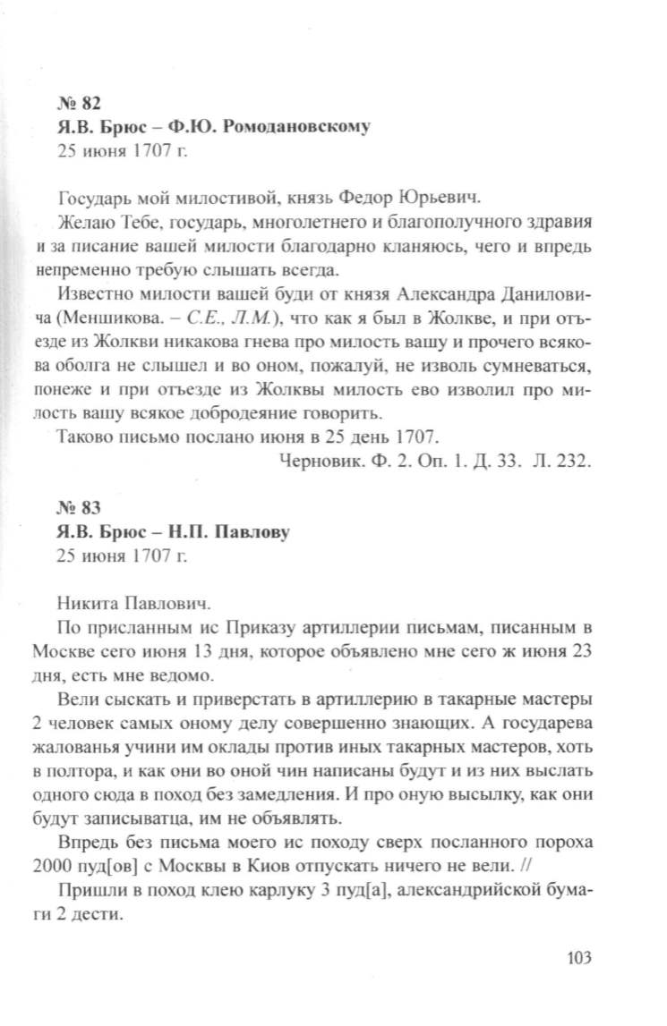 Я.В. Брюс- Ф.Ю. Ромодановскому