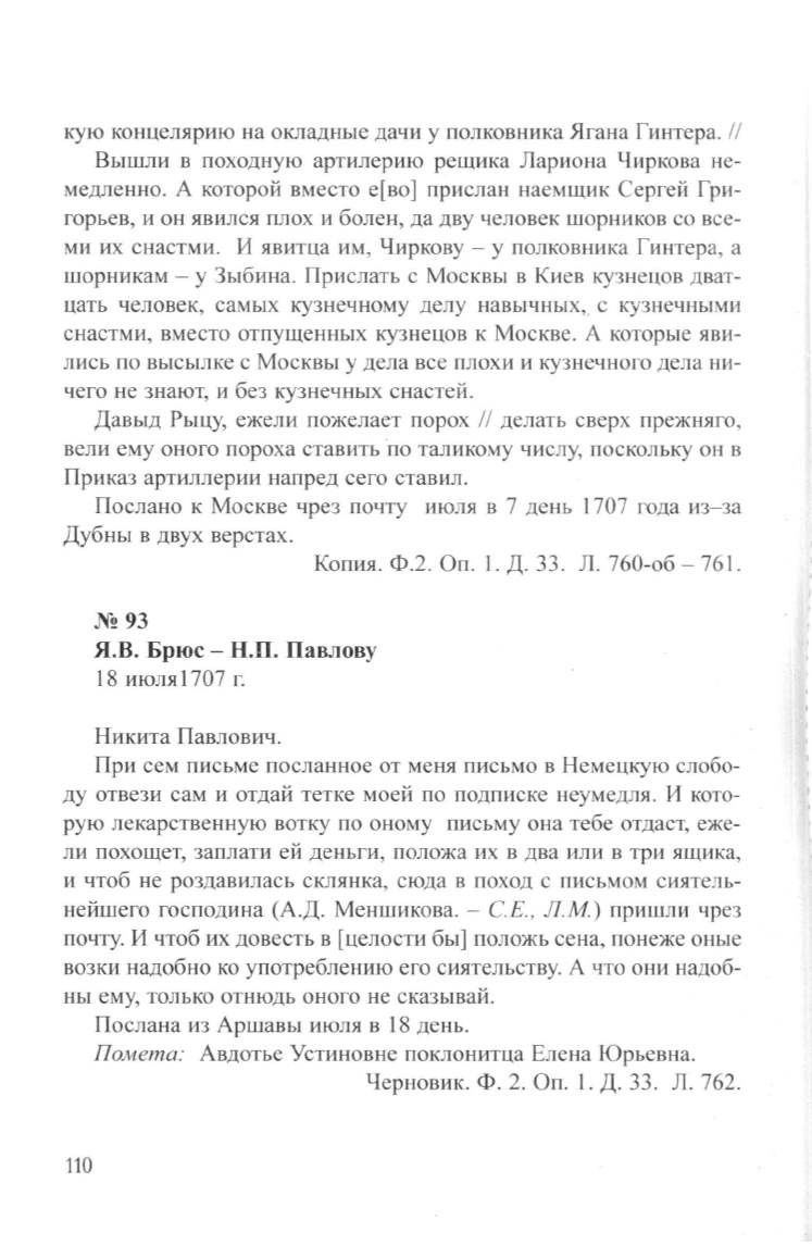 Я.В. Брюс- Н.П. Павлову