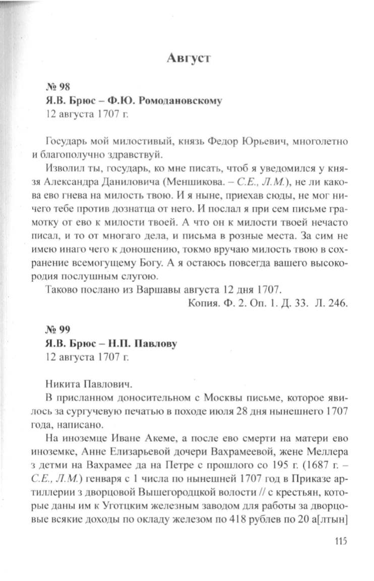 Я.В. Брюс- Ф.Ю. Ромодановскому