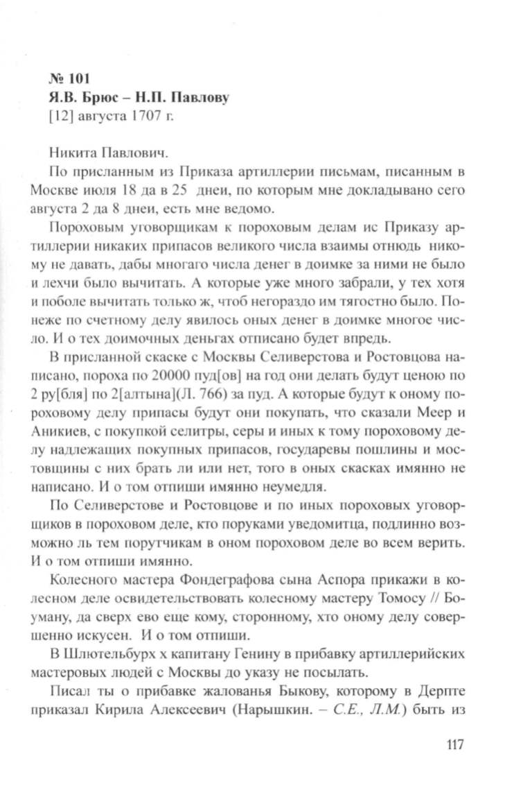 Я. В. Брюс- Н.П. Павлову