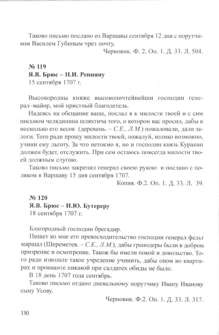 Я.В. Брюс- Н.И. Репнину