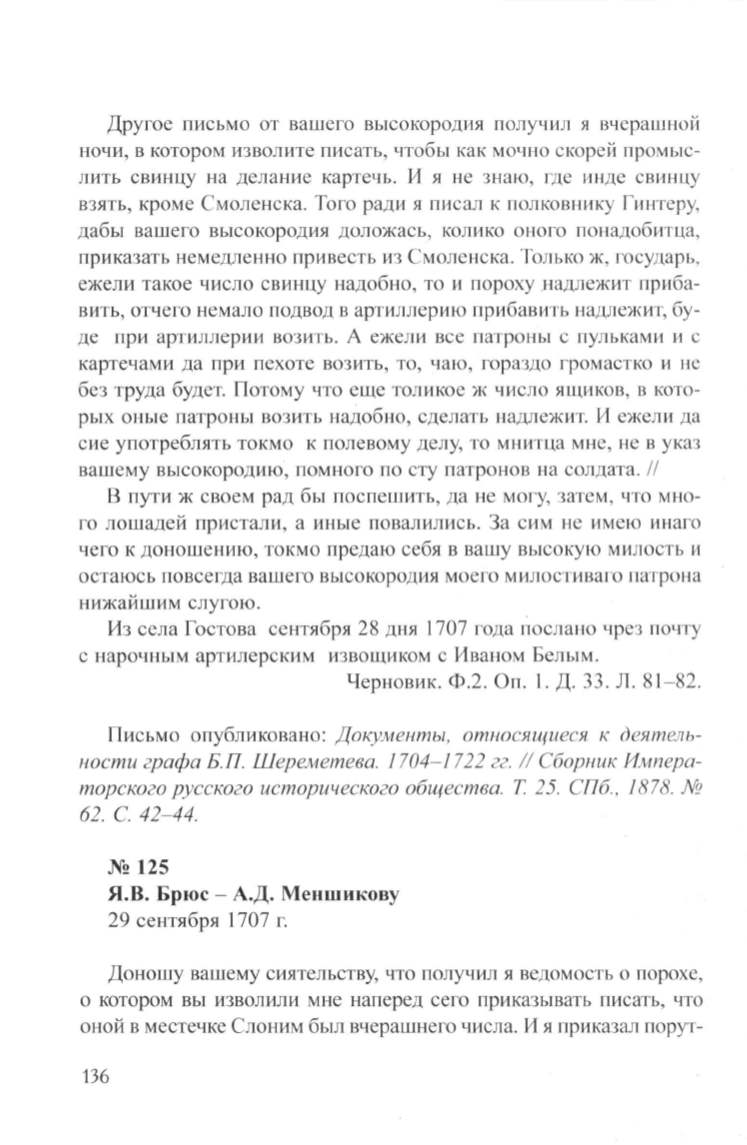 Я.В. Брюс - А.Д. Меншикову