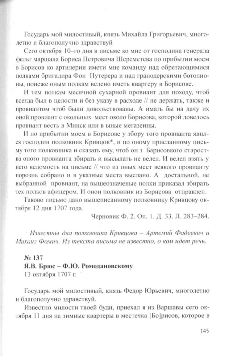 ся господин полковник Кривцов*, и по оному приеланному пись