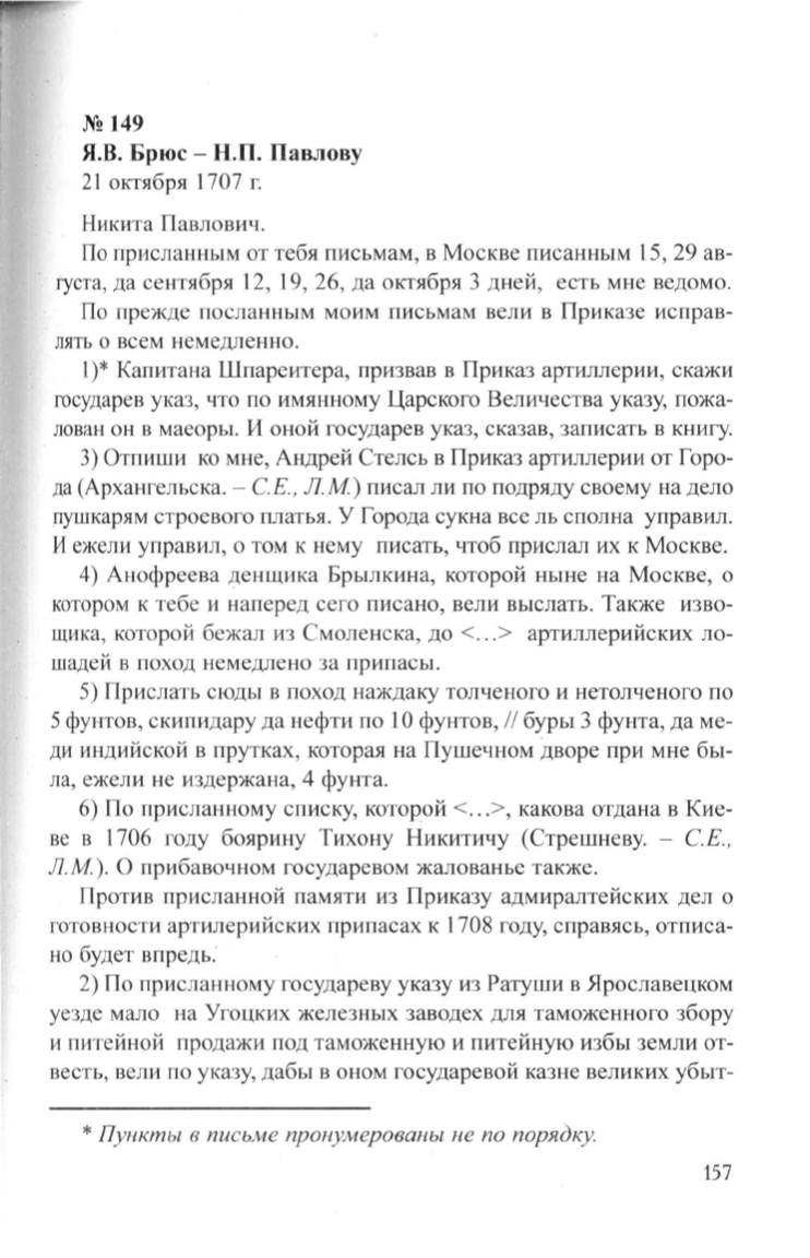 Пункты в письме пронумерованы не по порядку.