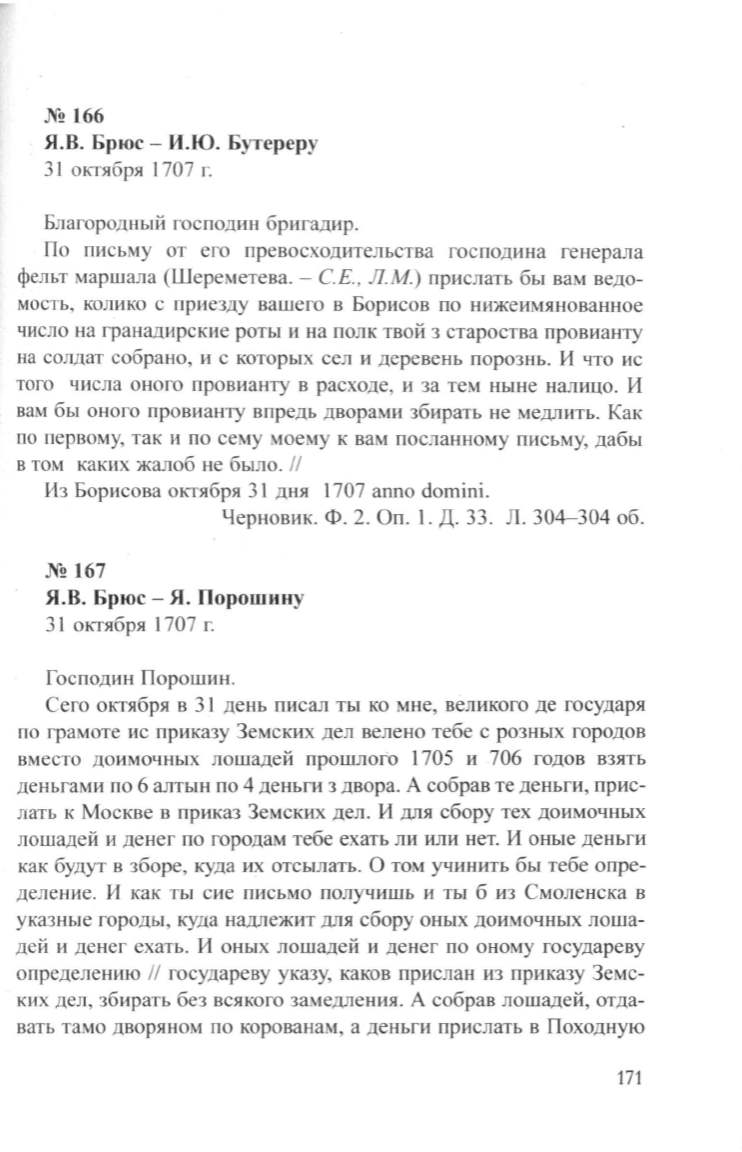Я.В. Брюс- Я. Порошину
