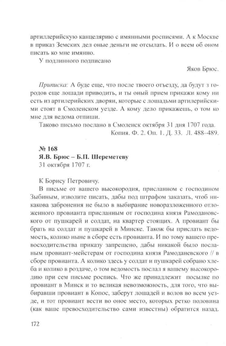 Я.В. Брюс- Б.П. Шереметеву