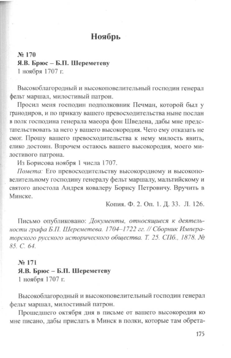 Я.В. Брюс- Б;П. Шереметеву