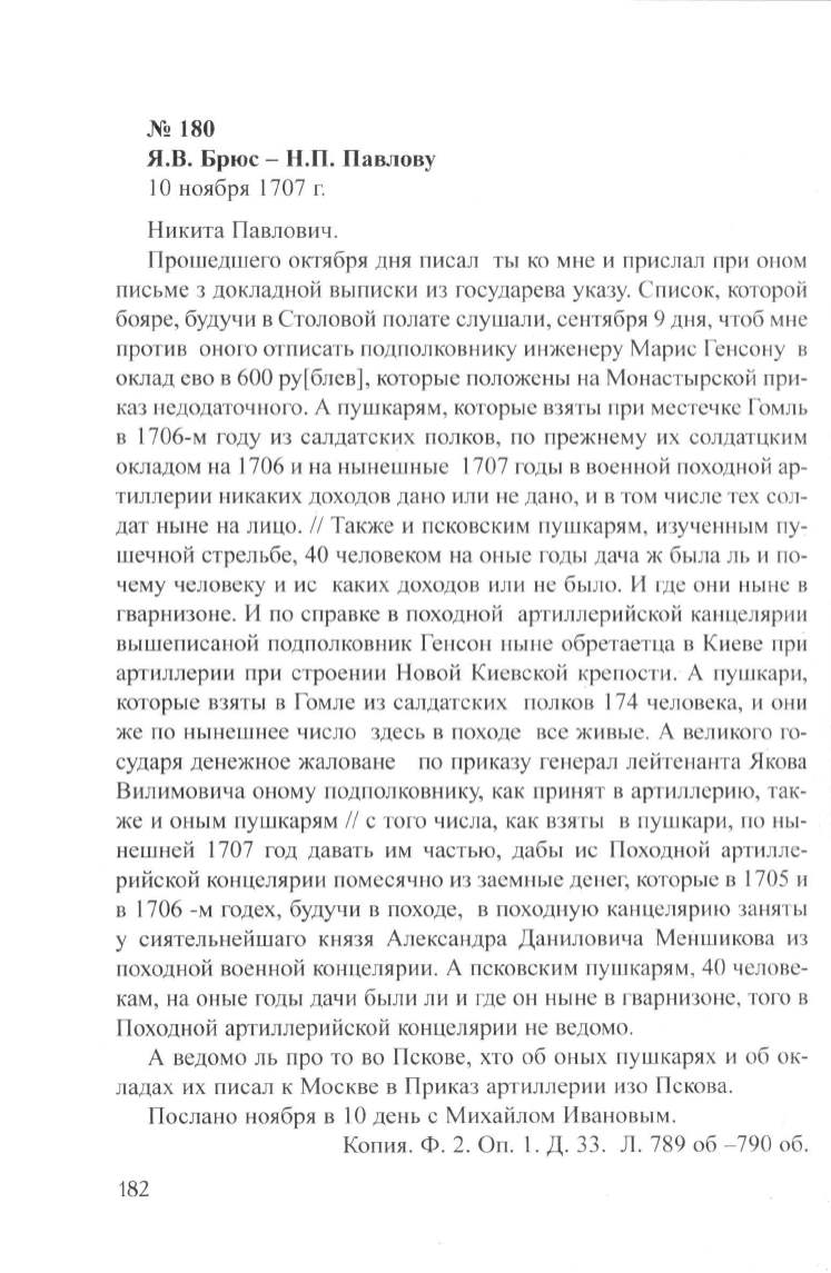 Я.В. Брюс- Н.П. Павлову