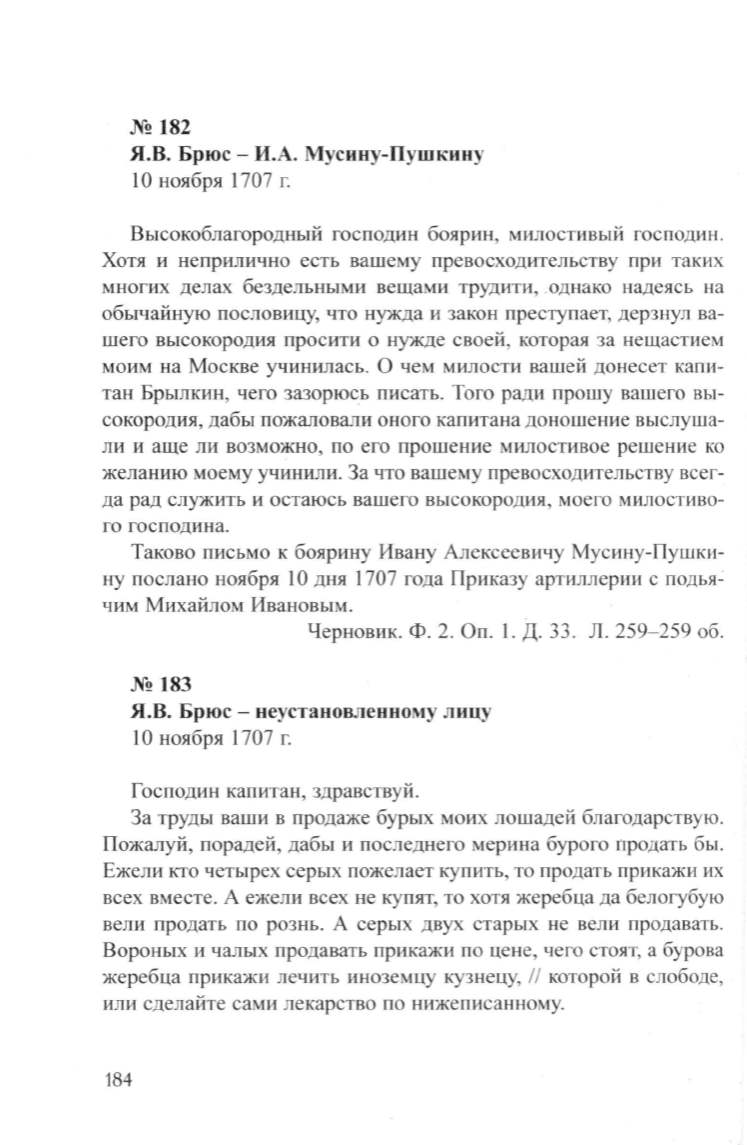 Я.В. Брюс- И.А. Мусину-Пушкину