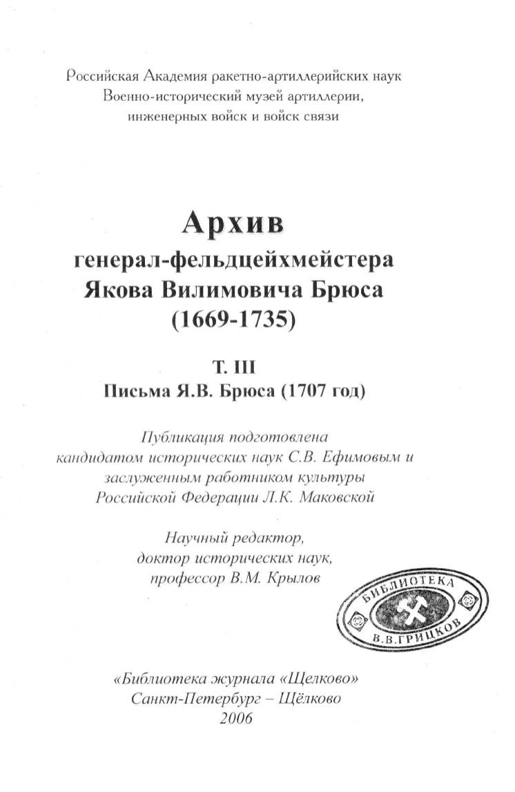 Письма Я.В. Брюса