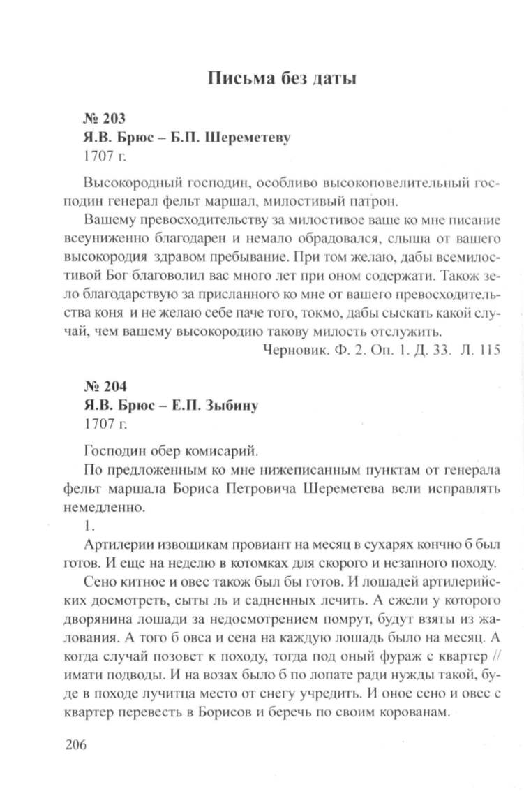 Я.В. Брюс- Б.П. Шереметеву