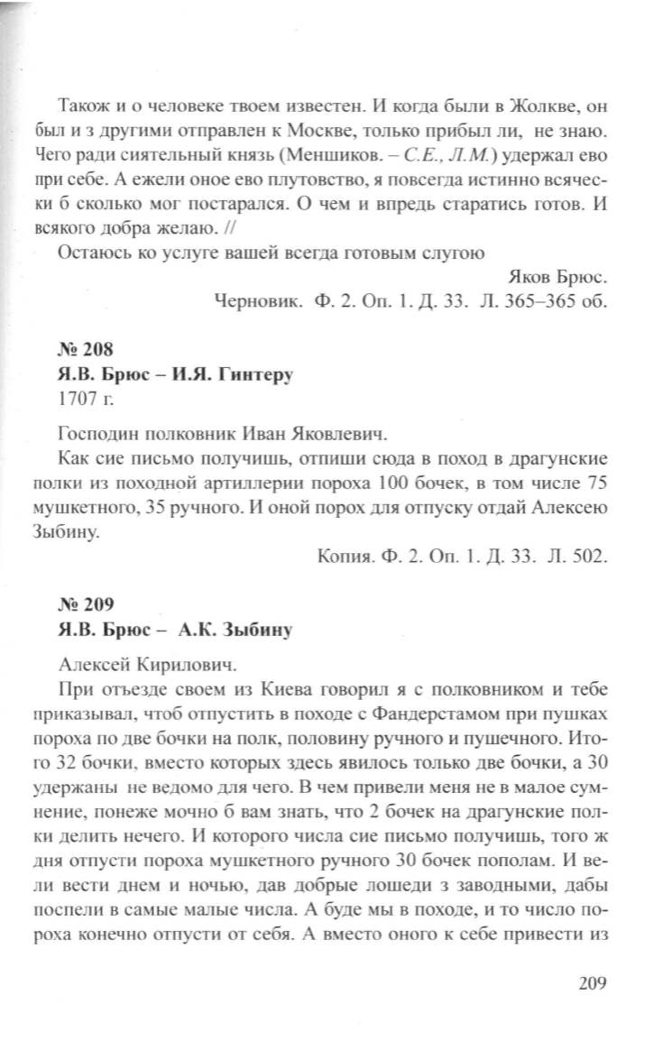 Я.В. Брюс- А.К. Зыбину