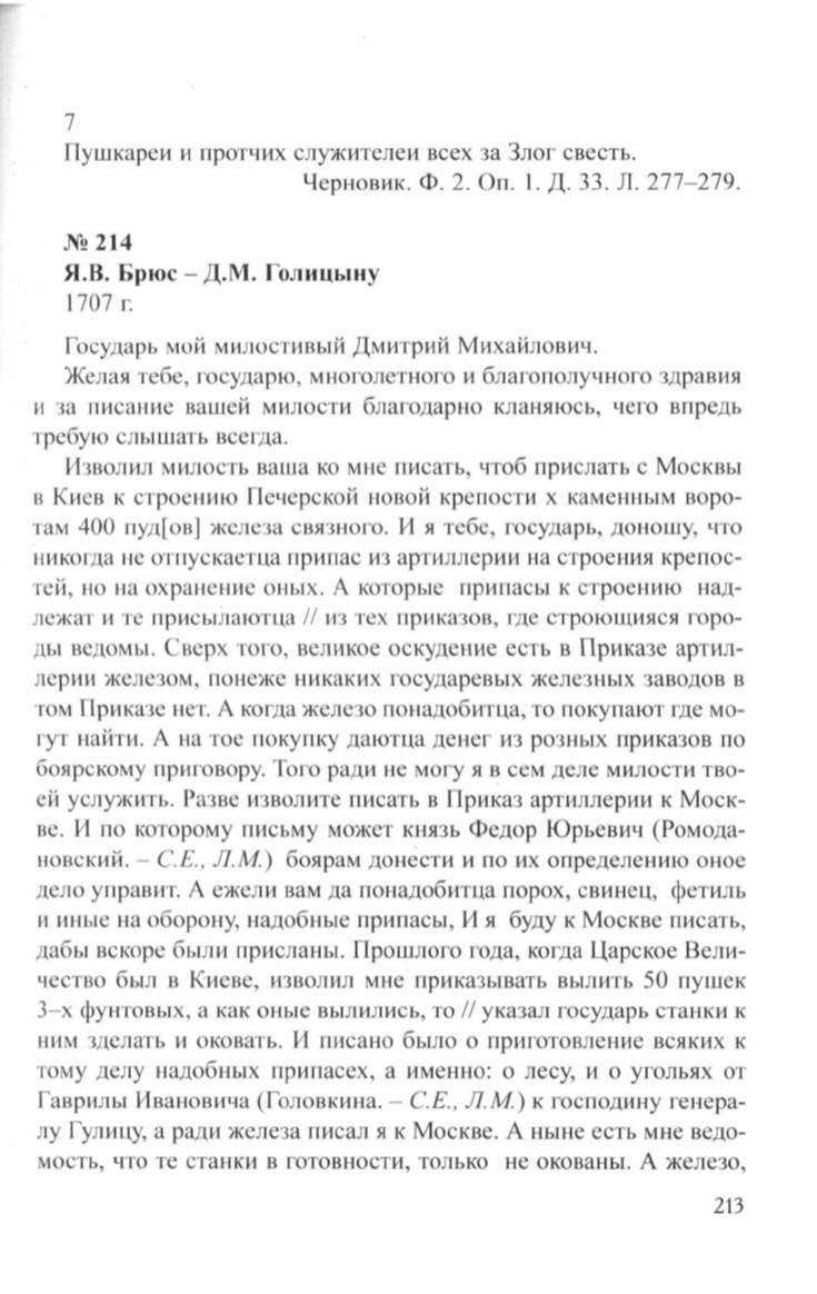Я.Н. Брюс- Д.М. Голицыну