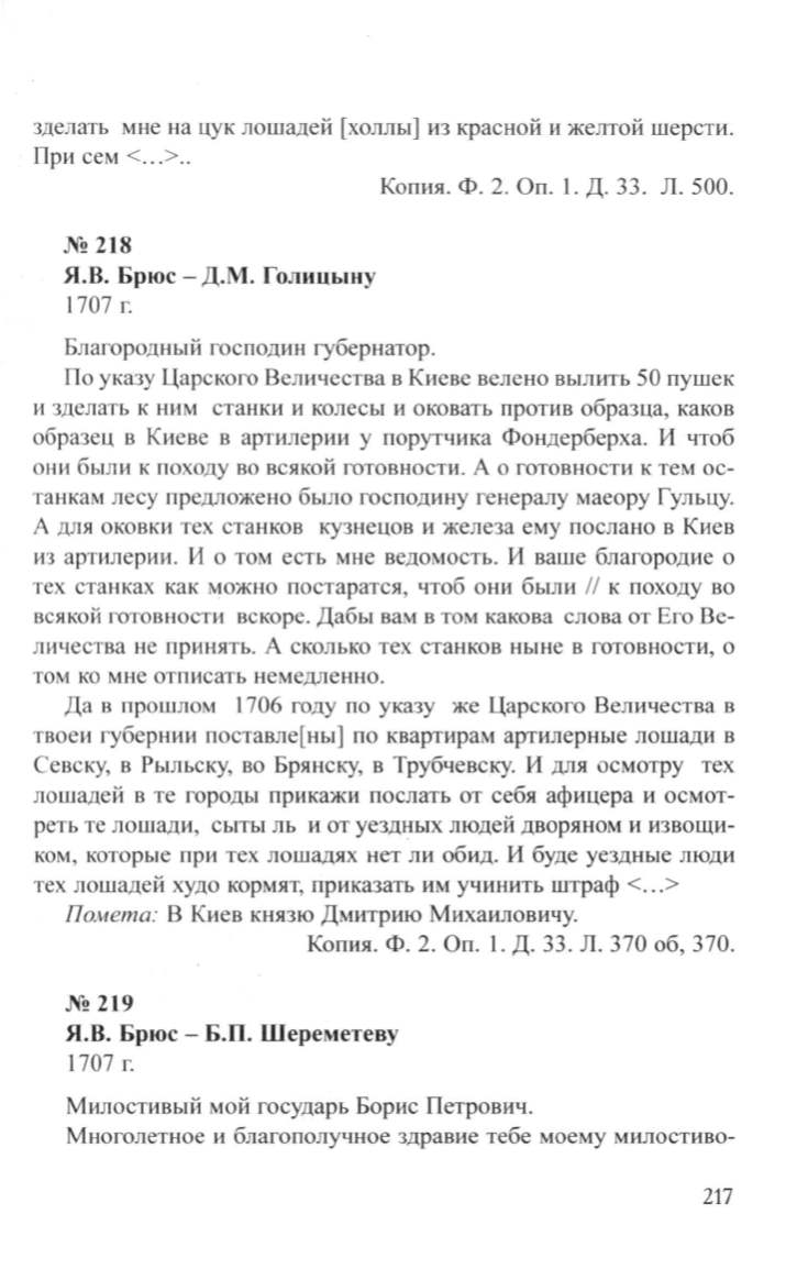 Я.В. Брюс- Д.М. Голицыну