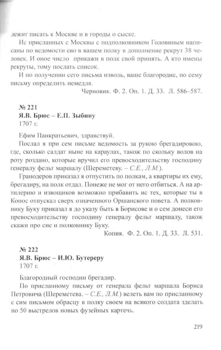 Я.В. Брюс- Е.П. Зыбину