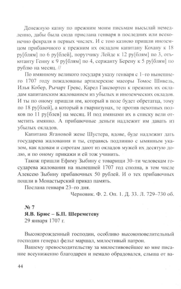 Я.В. Брюс- Б.П. Шереметеву