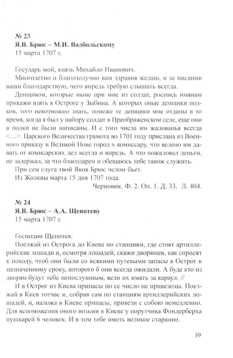 Я.В. Брюс- М.И. Вадбольскому