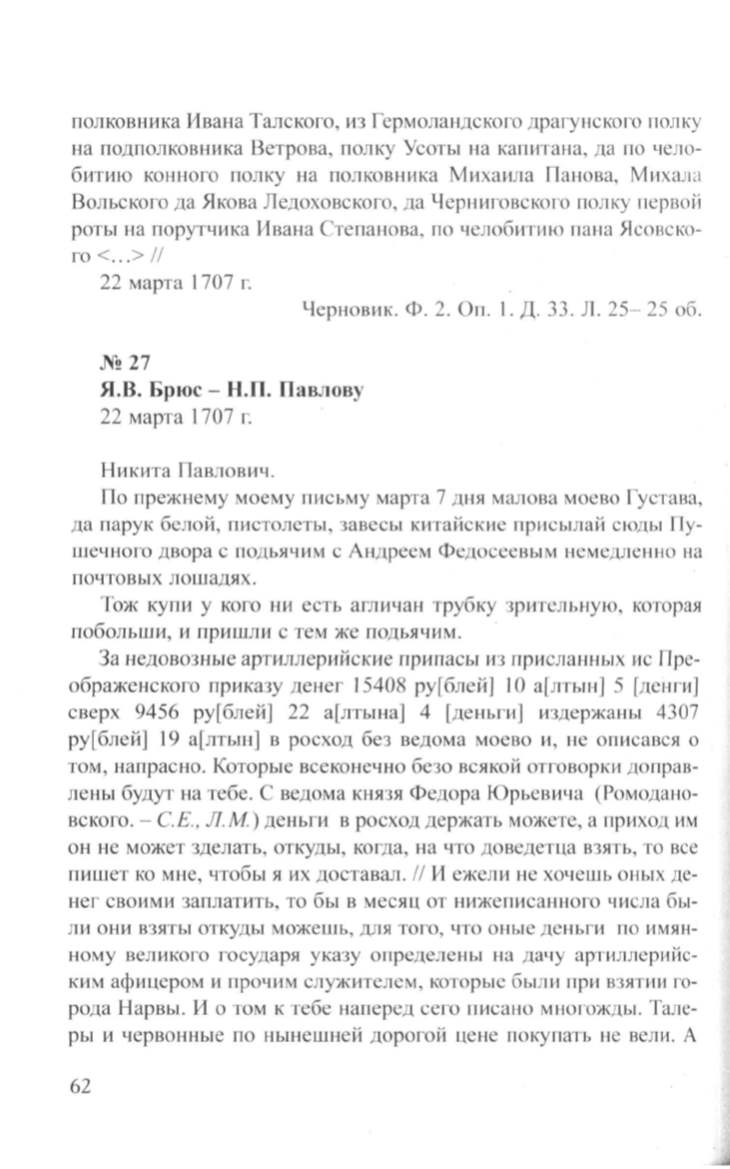 Я.В. Брюс- Н.П. Павлову