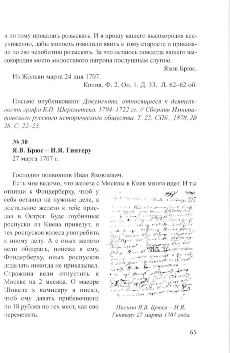 Письмо Я. В. Брюса - И.Я.