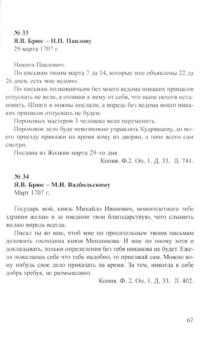 Я.В. Брюс- Н.П. Павлову