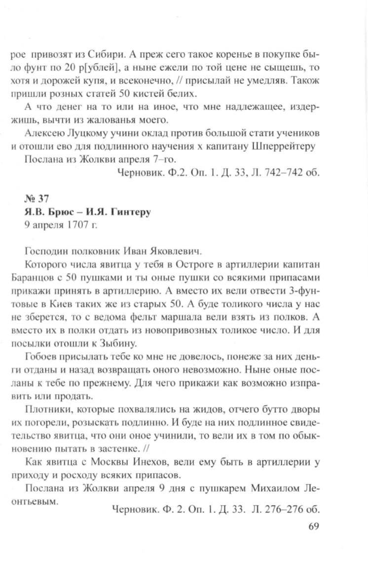 Я.В. Брюс- И.Я . Гинтеру