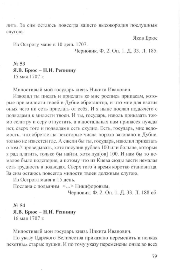 Я.В. Брюс- Н.И. Репнину