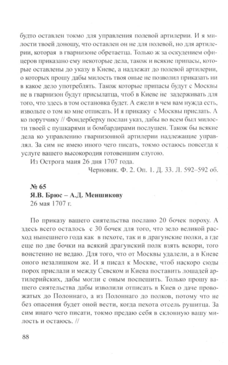 Я.В. Брюс- А.Д. Меншикову