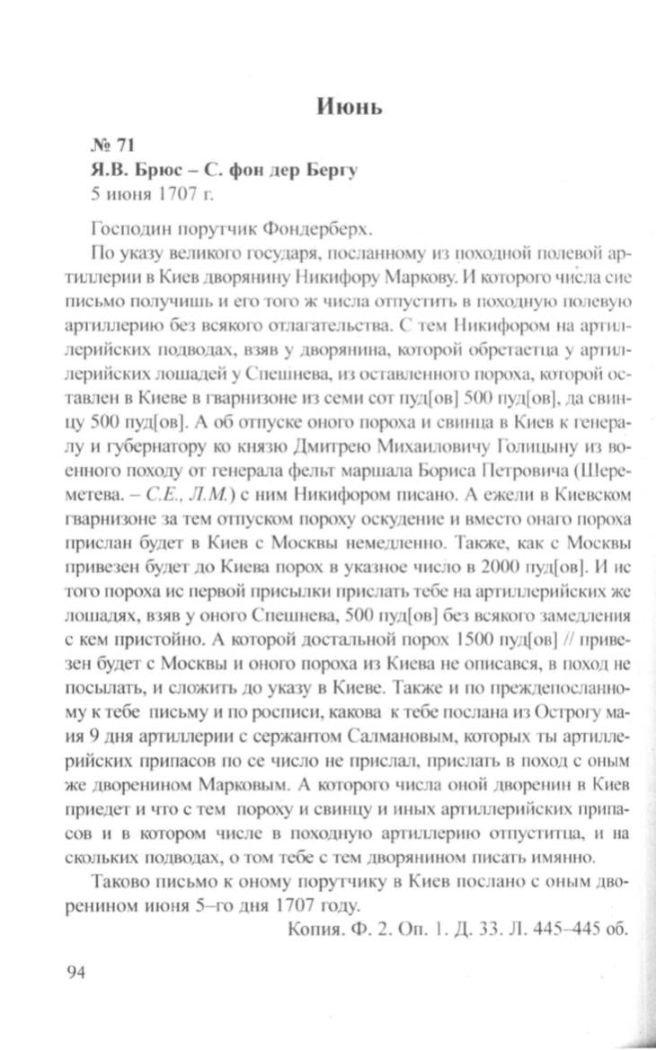 Я.В. Брюс- С. фон дер Бергу