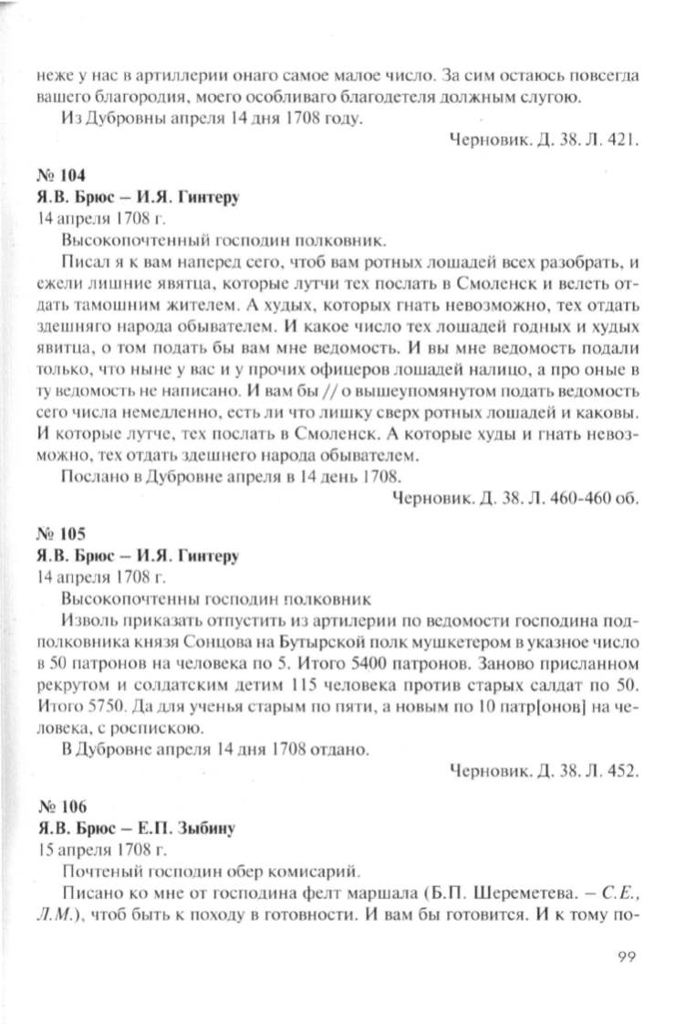 Я.В. Брюс- Е.П. Зыбину