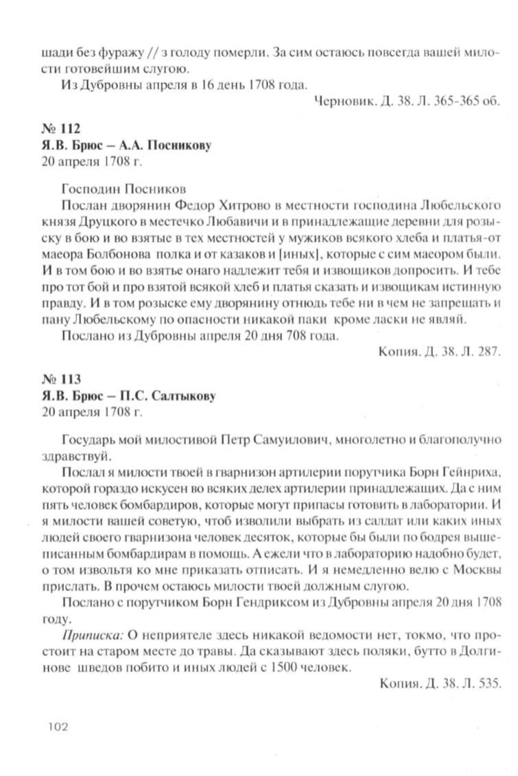 Я.В. Брюс- П.С. Салтыкову
