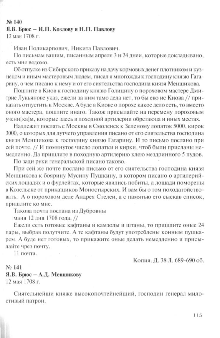 Я.В. Брюс- И.П. Козлову и Н.П. Павлову