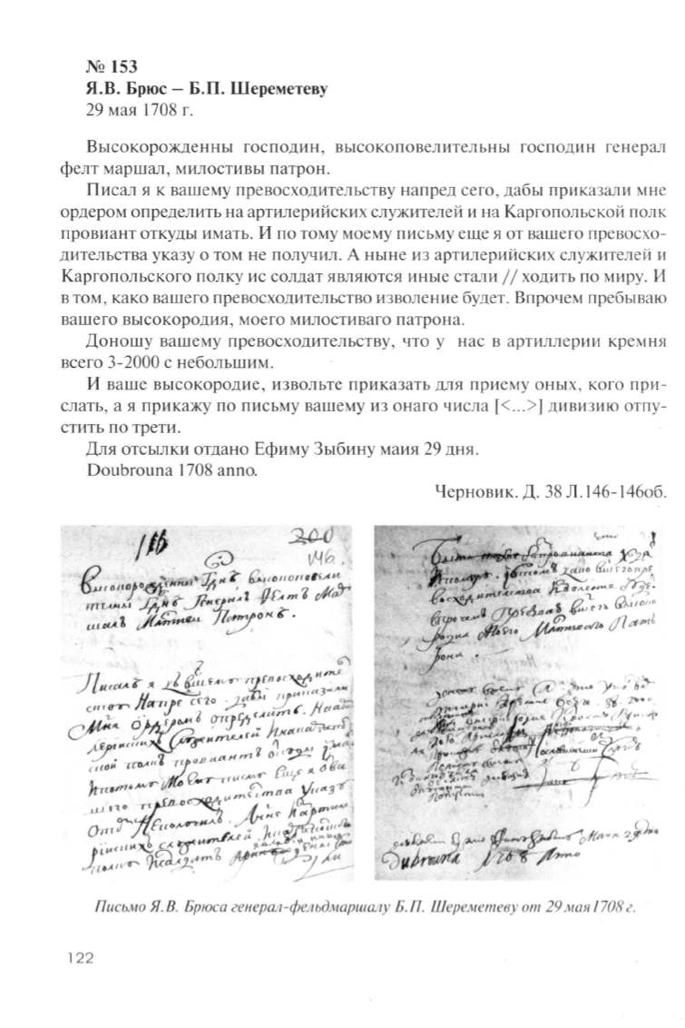 Письмо Я. В. Брюса генерал-фельдмаршалу Б. П. Шереметеву от