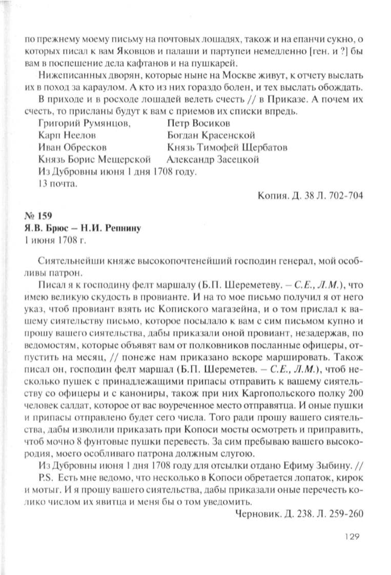 Писал я к господину фелт маршалу (Б.П. Шереметеву.- С.Е. , Л.М.), что