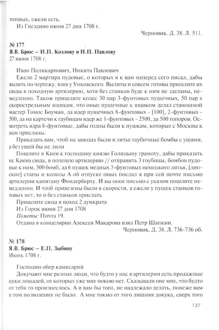 Я. В. Брюс- Е.П. Зыбину