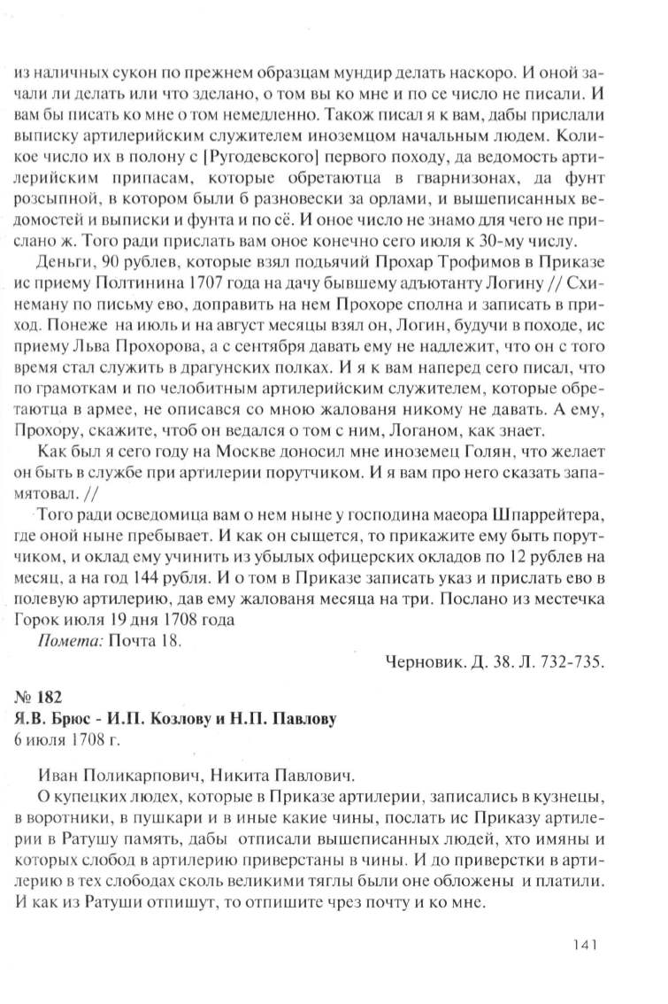 Я. В . Брюс- И.П. Козлову и Н.П. Павлову