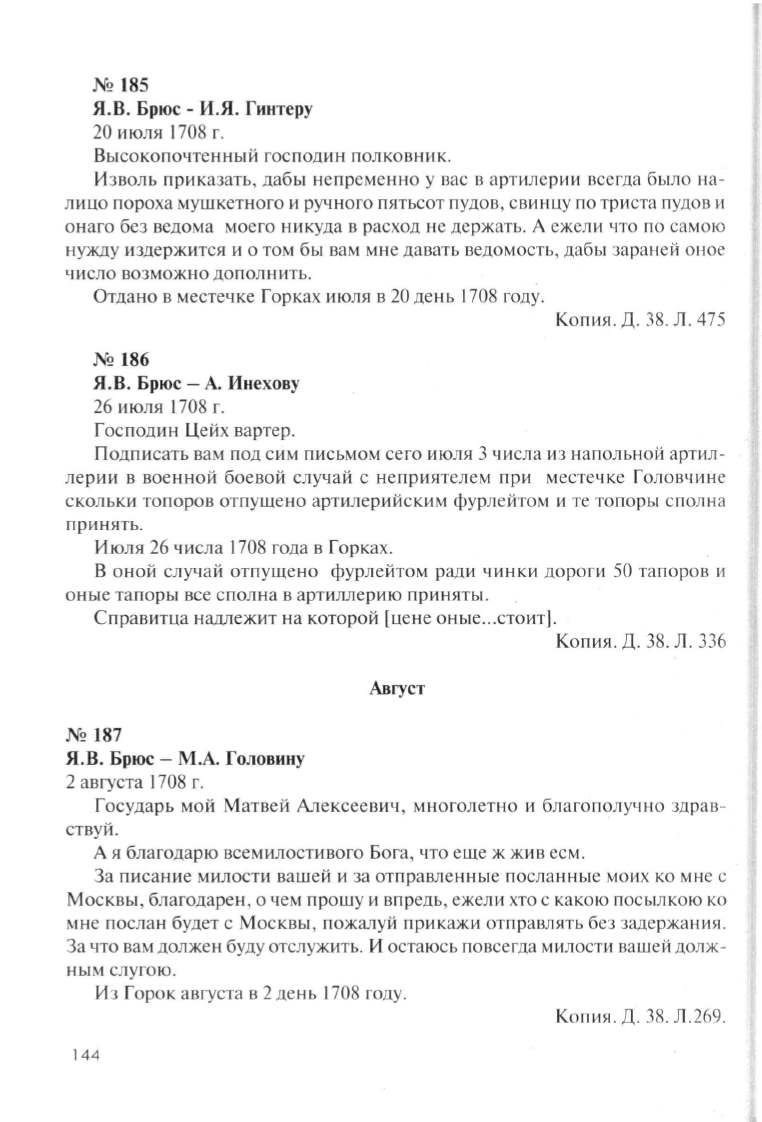 Я.В. Брюс -А. Инехову