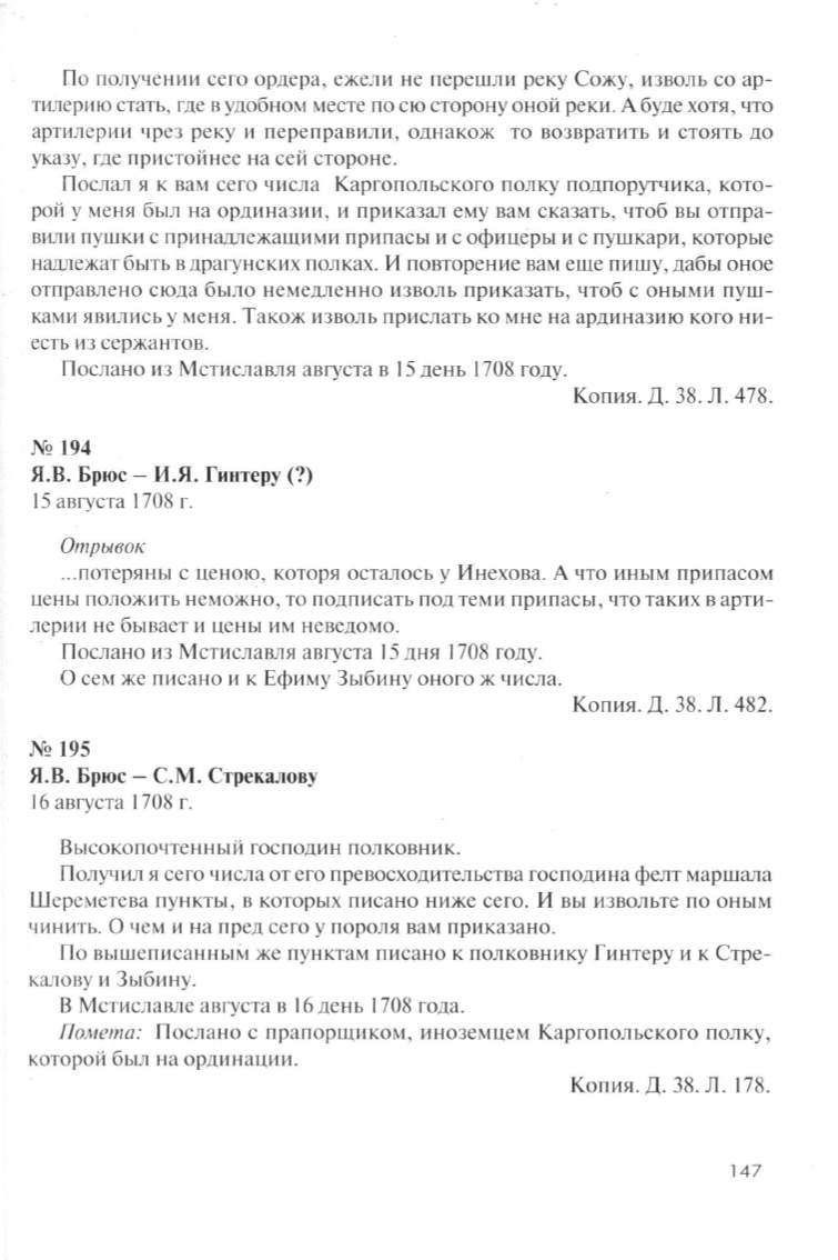 Я.В. Брюс- С. М. Стрекалову