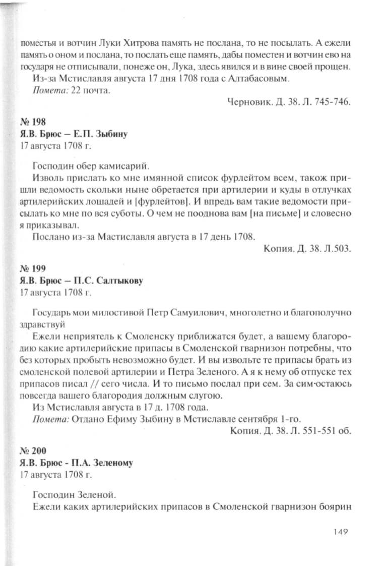 Помета: Отдано Ефиму Зыбину в Мстиславле сентября 1-го.