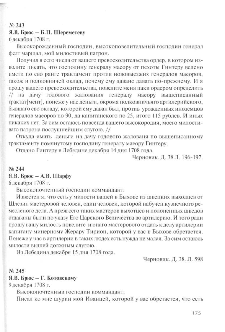 Я.В. Брюс- Б.П. Шереметеву