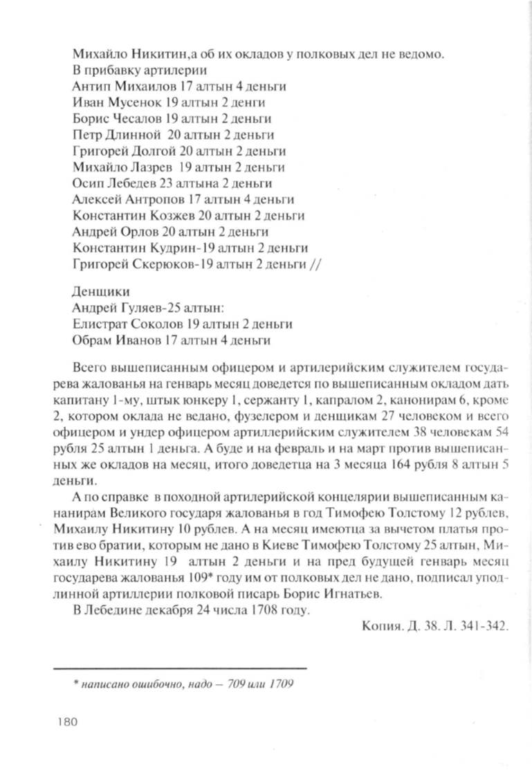 Михайла Никитин ,а об их окладов у полковых дел не ведомо.