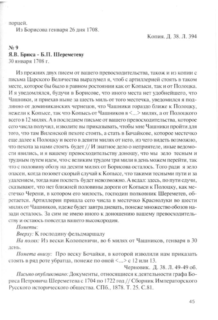 Я. В. Брюса- Б.П. Шереметеву