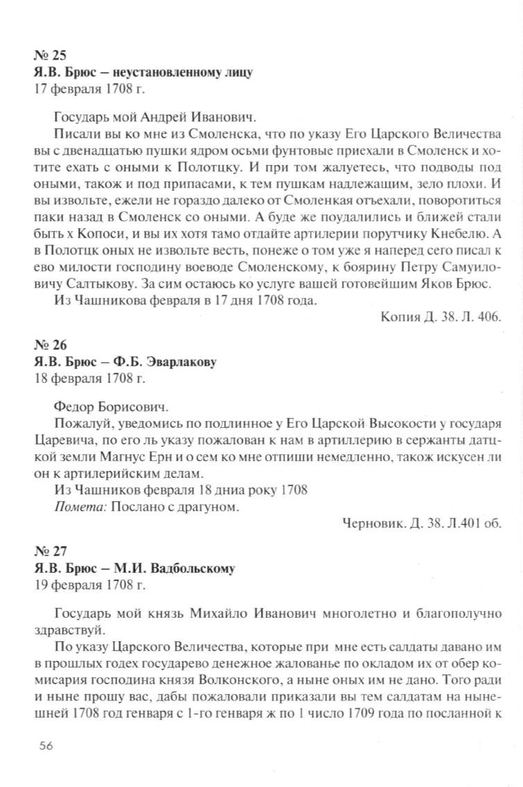 Я.В. Брюс- Ф.Б. Эварлакову