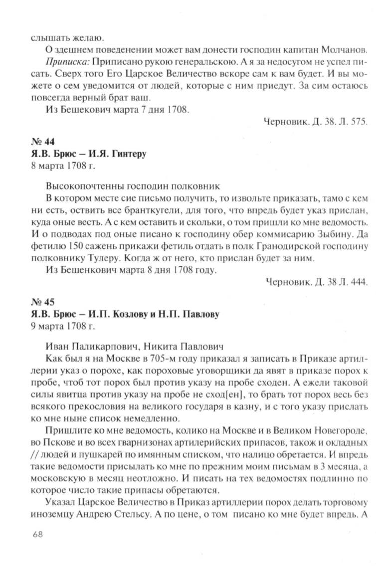 Я.В . Брюс - И.П . Козлову и Н.П. Павлову