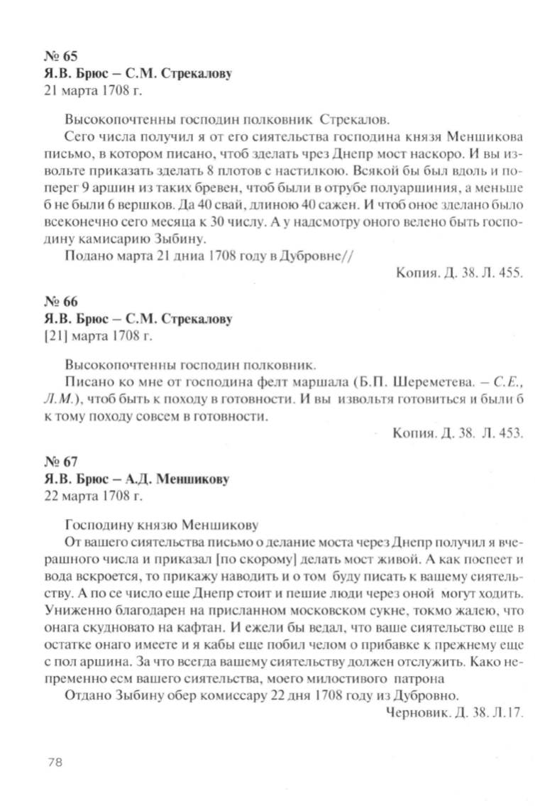 Я.В. Брюс- С . М. Стрекалову