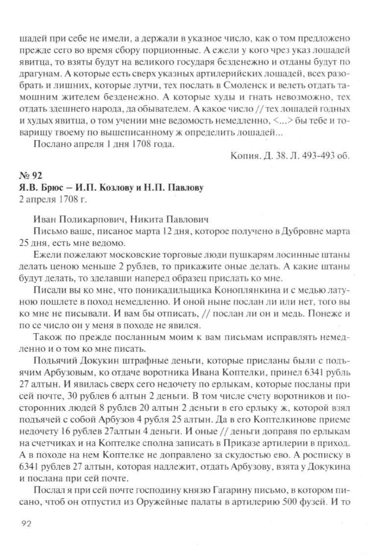 варишу твоему по вышеписанному ж определить лошадей